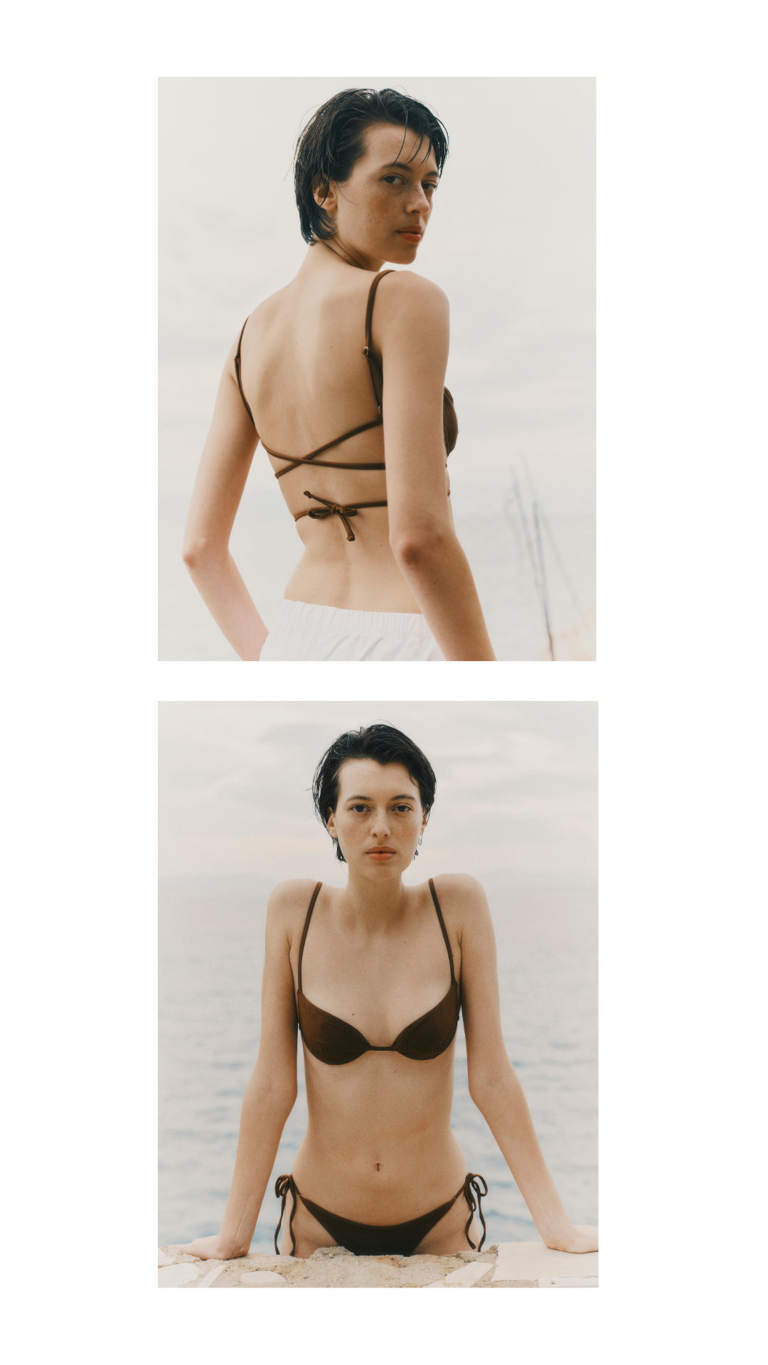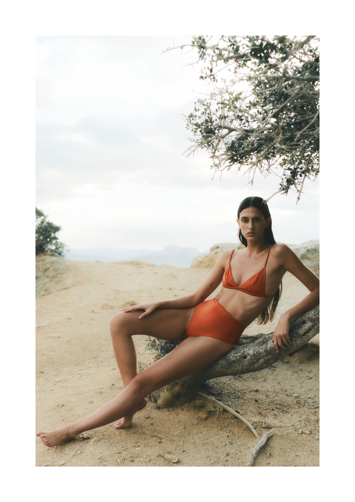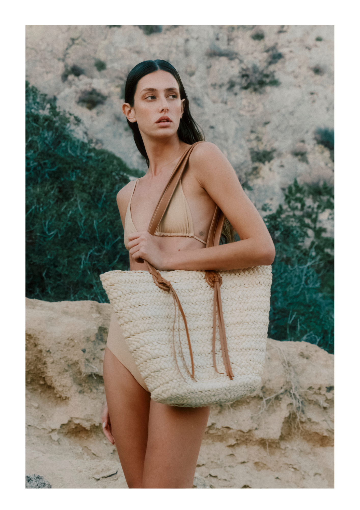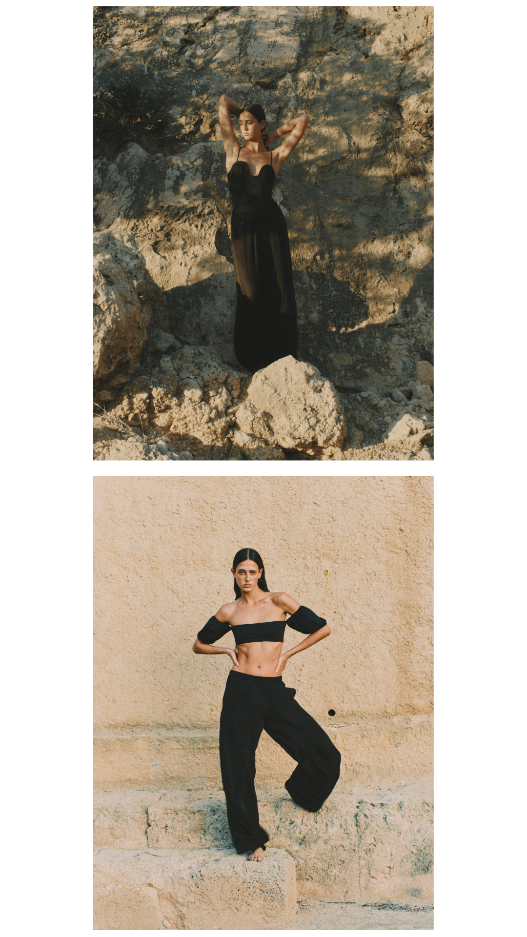 To complement this swimwear line, a thoughtfully designed wardrobe unfolds: dresses with balloon sleeves, airy silk crepe tunics, wide-leg trousers, and linen ensembles.